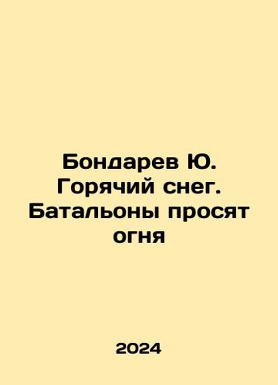 Bondarev Yu. Hot snow. Battalions ask for fire In Russian /Bondarev Yu. Goryachiy sneg. Batalony prosyat ognya Russian Literature. Big Books St. Petersburg ABC 2024. 896 p.We have thousands of titles and often several copies of each title may be available. Please feel free to contact us for a detailed description of the copies available.SKUalb0e9aa2a3c44bcc7f.