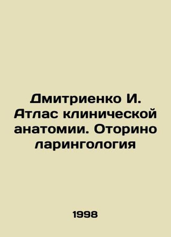 Dmitrienko I. Atlas of Clinical Anatomy. Otorhinolaryngology In Russian /Dmitrienko I. Atlas klinicheskoy anatomii. Otorinolaringologiya M PUDN 1998. 168 p.We have thousands of titles and often several copies of each title may be available. Please feel free to contact us for a detailed description of the copies available.SKUalb0e9d2c6dc5392bcb.