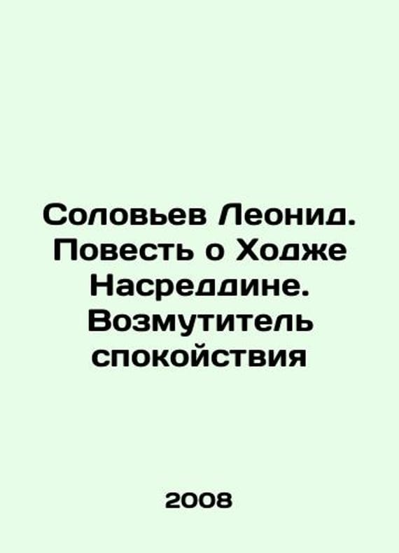 Leonid Solovyov. The Tale of Khoja Nasreddin. The Troublemaker of Calm In Russian (ask us if in doubt)/Solov'ev Leonid. Povest' o Khodzhe Nasreddine. Vozmutitel' spokoystviya. Short description: In Russian (ask us if in doubt).Series: ABC Classics. SPb ABC 2008. We have thousands of titles and often several copies of each title may be available. Please feel free to contact us for a detailed description of the copies available. SKUalb0eb9829c68ad5f18