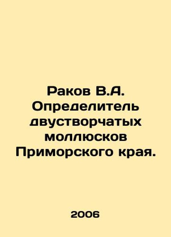 Rakov V.A. Identifier of bivalves in Primorsky Krai. In Russian /Rakov V.A. Opredelitel dvustvorchatykh mollyuskov Primorskogo kraya.Circulation 300 copies of Vladivostok: Dalnauka, 2006.We have thousands of titles and often several copies of each title may be available. Please feel free to contact us for a detailed description of the copies available. SKUalb0ec616cf9f404d75.