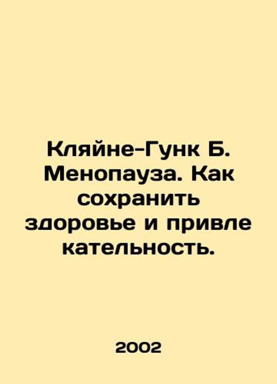 Klein-Gunk B. Menopause: How to maintain health and attractiveness. In Russian /Klyayne-Gunk B. Menopauza. Kak sokhranit zdorove i privlekatelnost. Translated from German by N.A.Vroublevskoy. M.: Unikum Press, 2002.We have thousands of titles and often several copies of each title may be available. Please feel free to contact us for a detailed description of the copies available.SKUalb0ee276431063b839.