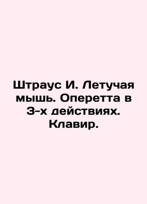 Strauss I. Bat. Operetta in 3 Acts. Keyboard. In Russian /Shtraus I. Letuchaya mysh. Operetta v 3-kh deystviyakh. Klavir. In German: Hamburg: 168 p.We have thousands of titles and often several copies of each title may be available. Please feel free to contact us for a detailed description of the copies available.SKUalb0ee9be89c2198081.