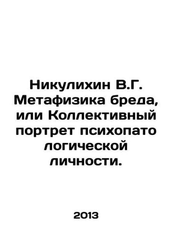 Nikulikhin V.G. Metaphysics of delirium, or the Collective Portrait of a Psychopathological Personality. In Russian /Nikulikhin V.G. Metafizika breda, ili Kollektivnyy portret psikhopatologicheskoy lichnosti. St. Petersburg Renome. 2013. 192p.We have thousands of titles and often several copies of each title may be available. Please feel free to contact us for a detailed description of the copies available.SKUalb0f073a4b40c9234c.
