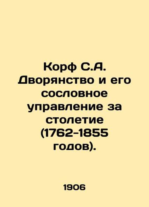 Corfu S.A. The Nobility and its Estate for a Century (1762-1855). In Russian /Korf S.A. Dvoryanstvo i ego soslovnoe upravlenie za stoletie (1762-1855 godov). St. Petersburg: Trenke and Fusno Printing House 1906. 720s. We have thousands of titles and often several copies of each title may be available. Please feel free to contact us for a detailed description of the copies available. SKUalb0f4597846bb6d6a8.