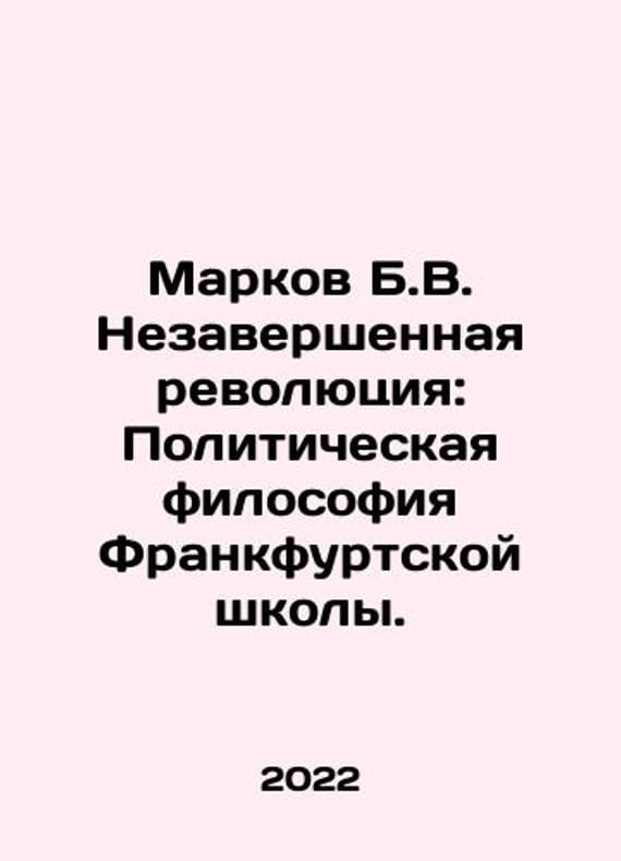 Markov B.V. The Unfinished Revolution: The Political Philosophy of the Frankfurt School. In Russian /Markov B.V. Nezavershennaya revolyutsiya: Politicheskaya filosofiya Frankfurtskoy shkoly. Series: A Word About the Being of St. Petersburg Beresta 2022. 468s. We have thousands of titles and often several copies of each title may be available. Please feel free to contact us for a detailed description of the copies available. SKUalb0f506a1257a6fa32.
