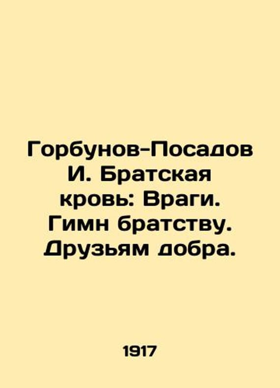 Gorbunov-Posadov I. Brotherly blood: Enemies. Hymn to brotherhood. Friends of good. In Russian /Gorbunov-Posadov I. Bratskaya krov: Vragi. Gimn bratstvu. Druzyam dobra. Poems. World Brotherhood Series, Issue 4. M The Mediator Edition # 655. 1917. We have thousands of titles and often several copies of each title may be available. Please feel free to contact us for a detailed description of the copies available. SKUalb0f9f431ab4a9ab1e.