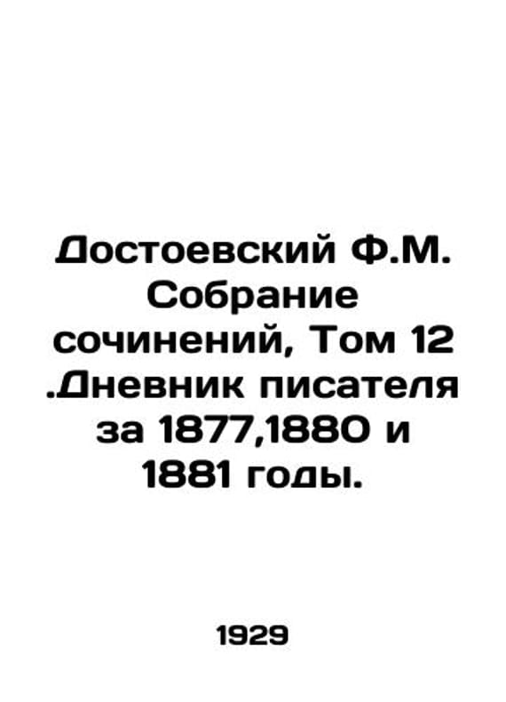 Dostoevsky F.M. Collection of Works, Volume 12. The diary of the writer for 1877,1880 and 1881. In Russian /Dostoevskiy F.M. Sobranie sochineniy, Tom 12.Dnevnik pisatelya za 1877,1880 i 1881 gody. M., L.: GIZ 1929. We have thousands of titles and often several copies of each title may be available. Please feel free to contact us for a detailed description of the copies available. SKUalb0fa6e6c87db32f24.