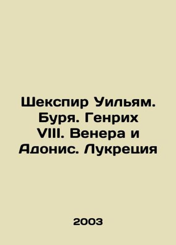 Shakespeare William. The Storm. Henry VIII. Venus and Adonis. Lucretia In Russian /Shekspir Uilyam. Burya. Genrikh VIII. Venera i Adonis. Lukretsiya M. ACT 2003. We have thousands of titles and often several copies of each title may be available. Please feel free to contact us for a detailed description of the copies available. SKUalb10224d16ed4c4285.