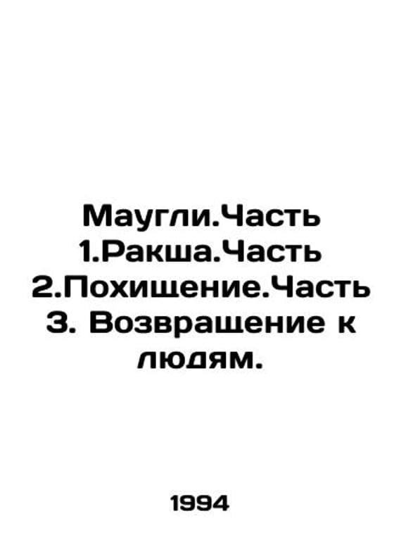 Maugli. Part 1.Raksha.Part 2.Kidnapping. Part 3. Return to the People. In Russian /Maugli.Chast 1.Raksha.Chast 2.Pokhishchenie.Chast 3. Vozvrashchenie k lyudyam. Artists A.Vinokurov, R.Davydov. Series: Film-fairy tale. Moscow. Altey 1994.We have thousands of titles and often several copies of each title may be available. Please feel free to contact us for a detailed description of the copies available. SKUalb1040216833008c75.