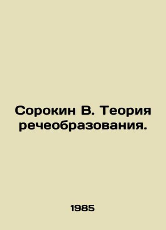 Sorokin V. Theory of speech formation. In Russian /Sorokin V. Teoriya recheobrazovaniya. M. Radio and Communications 1985. We have thousands of titles and often several copies of each title may be available. Please feel free to contact us for a detailed description of the copies available. SKUalb1042fdb2106ed4bb.