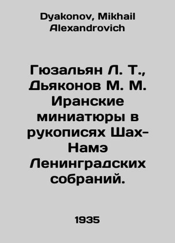 Guzalyan L. T., Deakonov M. M. Iranian miniatures in the manuscripts of the Shah-Nam of the Leningrad collections. In Russian /Gyuzalyan L. T., Dyakonov M. M. Iranskie miniatyury v rukopisyakh Shakh-Name Leningradskikh sobraniy. The State Hermitage Museum. Edited by A. N. Tikhonov. ACADEMIA. 1935. 91 p. Text and 54 l., 25,517.0 sm. We have thousands of titles and often several copies of each title may be available. Please feel free to contact us for a detailed description of the copies available. SKUalb1044ec614f508a9f.