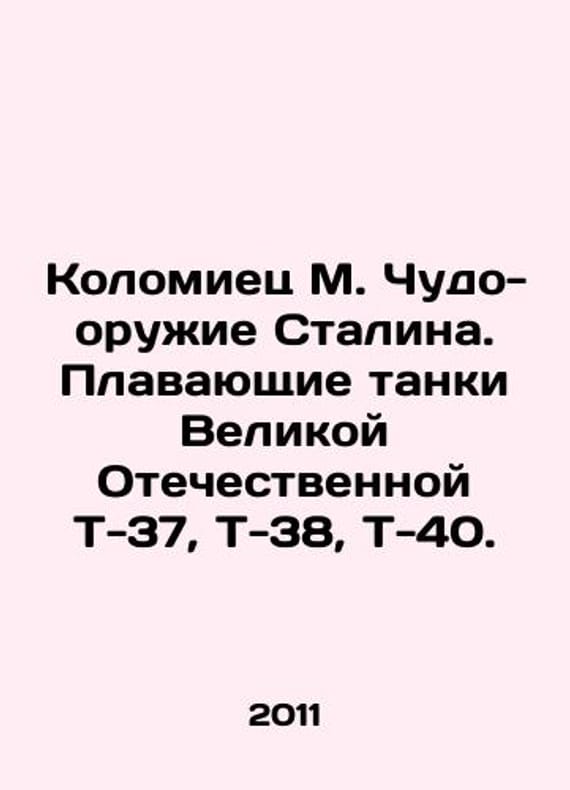 Kolomiets M. Miracle weapon of Stalin. Floating tanks of the Great Patriotic T-37, T-38, T-40. In Russian /Kolomiets M. Chudo-oruzhie Stalina. Plavayushchie tanki Velikoy Otechestvennoy T-37, T-38, T-40. War series and us. M. Yauzs tank collection: Exmo 2011. 108 p.We have thousands of titles and often several copies of each title may be available. Please feel free to contact us for a detailed description of the copies available.SKUalb10c81da971fba7c6.