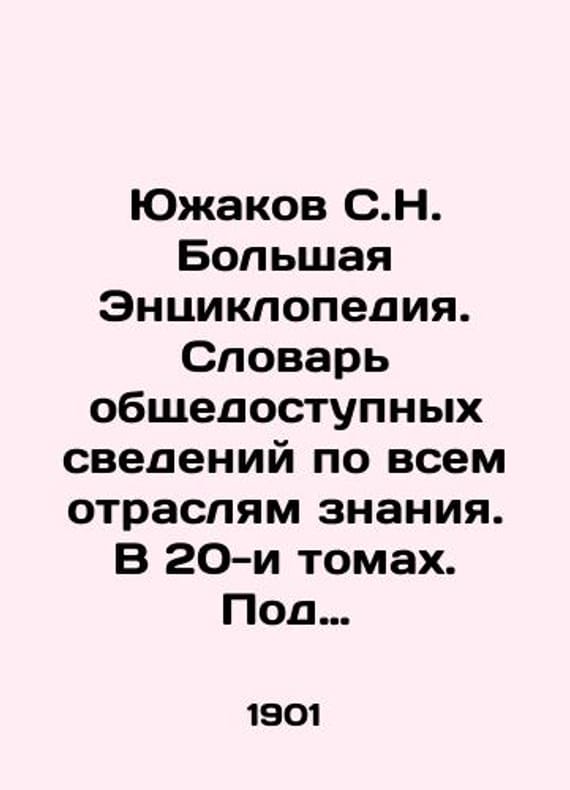 Yuzhakov S.N. Great Encyclopedia. Dictionary of publicly available information on all branches of knowledge. In 20 volumes. Edited by S.N. Yuzhakov. Volume 4-Buguruslan-Byzantine Law. In Russian /Yuzhakov S.N. Bolshaya Entsiklopediya. Slovar obshchedostupnykh svedeniy po vsem otraslyam znaniya. V 20-i tomakh. Pod redaktsiey S.N. Yuzhakova. Tom 4-Buguruslanskiy uezd-Vizantiyskoe pravo. St. Petersburg: The Enlightenment of 1901. We have thousands of titles and often several copies of each title may be available. Please feel free to contact us for a detailed description of the copies available. SKUalb10de10ee76499e20.