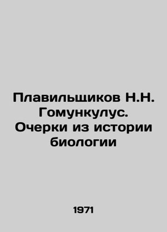 Smelters N.N. Gomunculus. Essays from the History of Biology In Russian /Plavilshchikov N.N. Gomunkulus. Ocherki iz istorii biologiiMoscow. Childrens Literature 1971.We have thousands of titles and often several copies of each title may be available. Please feel free to contact us for a detailed description of the copies available. SKUalb10ec44a68cc5d918.