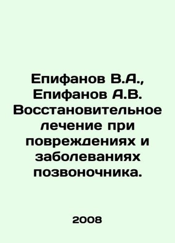 Epifanov V.A., Epifanov A.V. Regenerative treatment for spinal injuries and diseases. In Russian /Epifanov V.A., Epifanov A.V. Vosstanovitelnoe lechenie pri povrezhdeniyakh i zabolevaniyakh pozvonochnika. M. MEDpress-Inform 2008. We have thousands of titles and often several copies of each title may be available. Please feel free to contact us for a detailed description of the copies available. SKUalb10f7fc3582ec474a.