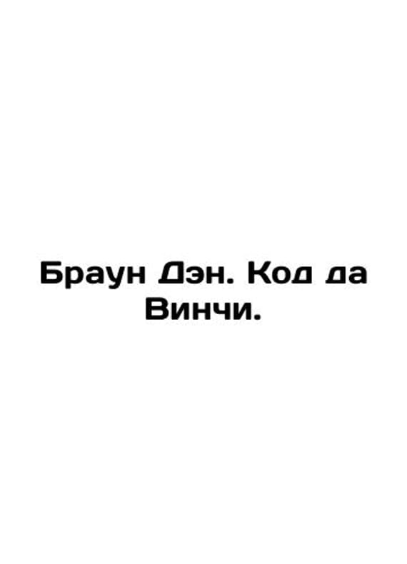 Brown Dan. The Da Vinci Code. Roman. In Russian /Braun Den. Kod da Vinchi. Roman. (ISBN: 5-17-027386-X 517027386) The secret code is hidden in the works of Leonardo da Vinci. Only it will help to find Christian shrines that confer unthinkable power and power. The key to the greatest mystery that mankind has wrestled with for centuries may be found in the novel The da Vinci Code. We have thousands of titles and often several copies of each title may be available. Please feel free to contact us for a detailed description of the copies available. SKUalbfe064fa95925d103.