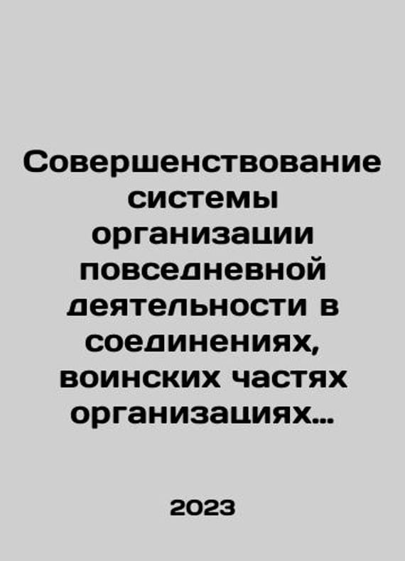 Improvement of the system for organizing day-to-day activities in formations and military units of organizations of the Ministry of Defence of the Russian Federation. Problems and ways of solving them. In Russian /Sovershenstvovanie sistemy organizatsii povsednevnoy deyatelnosti v soedineniyakh, voinskikh chastyakh organizatsiyakh Ministerstva oborony Rossiyskoy Federatsii. Problemnye voprosy i puti ikh resheniya. M. Omsk Automatic Armoured Engineering Int. 2023. 261 p.We have thousands of titles and often several copies of each title may be available. Please feel free to contact us for a detailed description of the copies available.SKUalb11542fd64cb8e705.