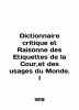 Dictionnaire critique et Raisonne des Etiquettes de la Cour, et des usages du Monde. I In English /Dictionnaire critique et Raisonne des Etiquettes de la Cour,et des usages du Monde. I Paris P.Mongie. 1818 409 pp. We have thousands of titles and often several copies of each title may be available. Please feel free to contact us for a detailed description of the copies available. SKUalb11548faf41f2b669.