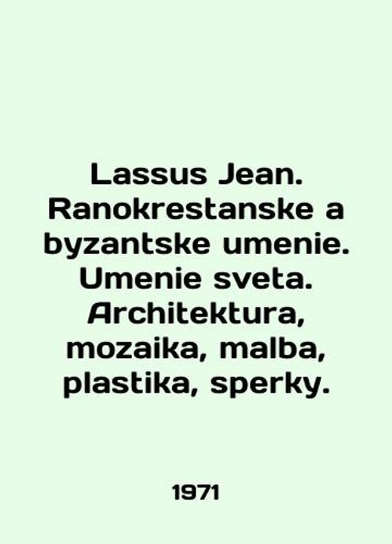 Lassus Jean. Ranokrestanske a byzantske umenie. Umenie sveta. Architektura, mozaika, malba, plastika, sperky. In English /Lassus Jean. Ranokrestanske a byzantske umenie. Umenie sveta. Architektura, mozaika, malba, plastika, sperky. Series: Umenie sveta. In Slovak. Bratislava Bratislava Pallas 1971. We have thousands of titles and often several copies of each title may be available. Please feel free to contact us for a detailed description of the copies available. SKUalb11f7fce4a27d4871.