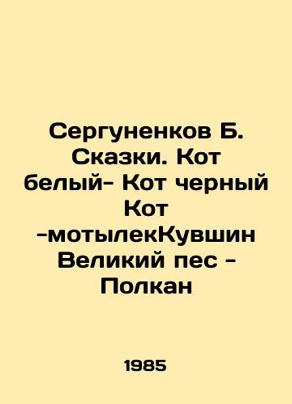 Sergunenkov B. Tales. The White Cat - The Black Cat - The Great Dog - Polkan In Russian /Sergunenkov B. Skazki. Kot belyy- Kot chernyy Kot -motylekKuvshin Velikiy pes - Polkan Childrens Literature 1985. We have thousands of titles and often several copies of each title may be available. Please feel free to contact us for a detailed description of the copies available. SKUalb125013c13e938770.