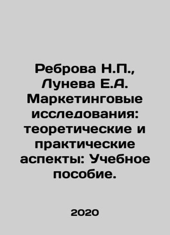 Rebrova N., Luneva E.A. Marketing Research: Theoretical and Practical Aspects: A Textbook. In Russian /Rebrova N., Luneva E.A. Marketingovye issledovaniya: teoreticheskie i prakticheskie aspekty: Uchebnoe posobie. Moscow Prometheus 2020.We have thousands of titles and often several copies of each title may be available. Please feel free to contact us for a detailed description of the copies available. SKUalb12827acf7b3488ba.