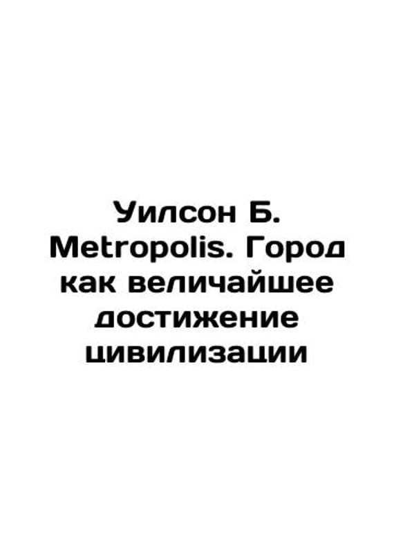 Wilson B. Metropolis. The City as the Greatest Achievement of Civilization In Russian /Uilson B. Metropolis. Gorod kak velichayshee dostizhenie tsivilizatsii M. Eksmo 2021. 544s.We have thousands of titles and often several copies of each title may be available. Please feel free to contact us for a detailed description of the copies available. SKUalb1289597710a4efa2.
