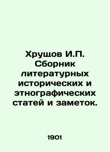 Khrushchev I.P. A collection of literary historical and ethnographic articles and notes. In Russian (ask us if in doubt)/Khrushchov I.P. Sbornik literaturnykh istoricheskikh i etnograficheskikh statey i zametok. Short description: In Russian (ask us if in doubt).St. Petersburg: Typography by M. Akinfiev and I. Leontiev 1901. 4 IV 502 7s. We have thousands of titles and often several copies of each title may be available. Please feel free to contact us for a detailed description of the copies available. SKUalb12ac87668716d3a9