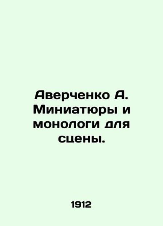 Averchenko A. Miniatures and monologues for the stage. In Russian /Averchenko A. Miniatyury i monologi dlya stseny. St. Petersburg 1912. We have thousands of titles and often several copies of each title may be available. Please feel free to contact us for a detailed description of the copies available. SKUalb13379773bcc6d327.