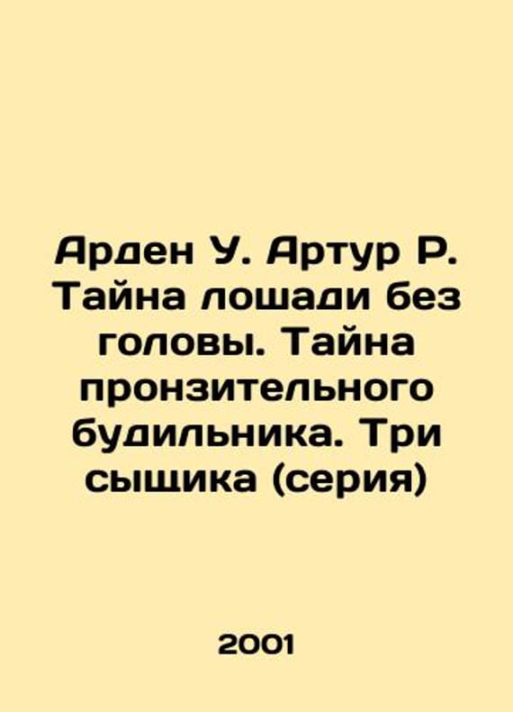 Arden W. Arthur R. The Mystery of the Headless Horse. The Mystery of the Shrugging Alarm Clock. Three Detectives (series) In Russian /Arden U. Artur R. Tayna loshadi bez golovy. Tayna pronzitelnogo budilnika. Tri syshchika (seriya) M OLMA Press 2001.We have thousands of titles and often several copies of each title may be available. Please feel free to contact us for a detailed description of the copies available. SKUalb13bf88bba5c1c306.
