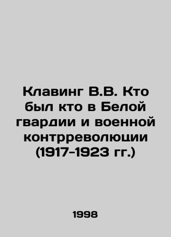 Klaving V.V. Who was in the White Guard and the Military Counter-Revolution (1917-1923) In Russian /Klaving V.V. Kto byl kto v Beloy gvardii i voennoy kontrrevolyutsii (1917-1923 gg.) Encyclopedic reference book. St. Petersburg Nestor 1998. 180p..We have thousands of titles and often several copies of each title may be available. Please feel free to contact us for a detailed description of the copies available.SKUalb13c2afbfb8843ea8.