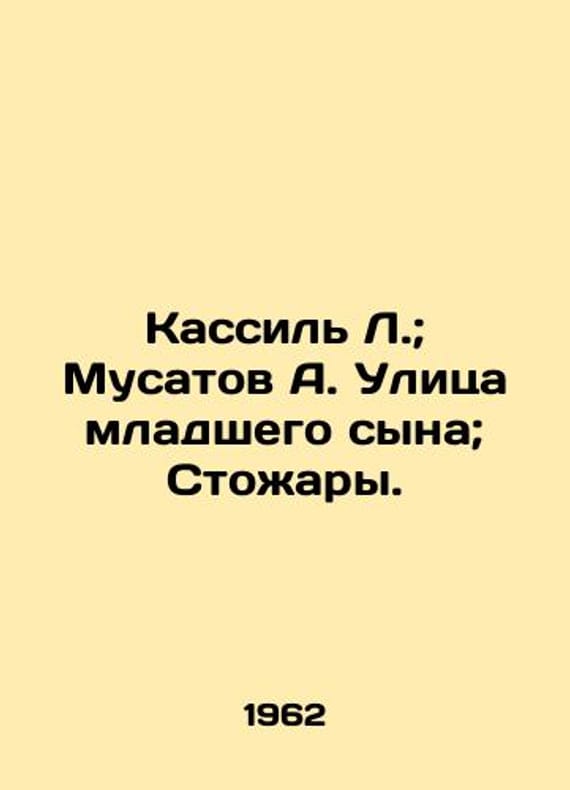 "Kassil L.; Musatov A. Younger son street; Stozhara. In Russian /Kassil L.; Musatov A. Ulitsa mladshego syna; Stozhary. Pioneer Library, Vol. 3 M DL 1962.We have thousands of titles and often several copies of each title may be available. Please feel free to contact us for a detailed description of the copies available. SKUalb13d3110941d8ff65."