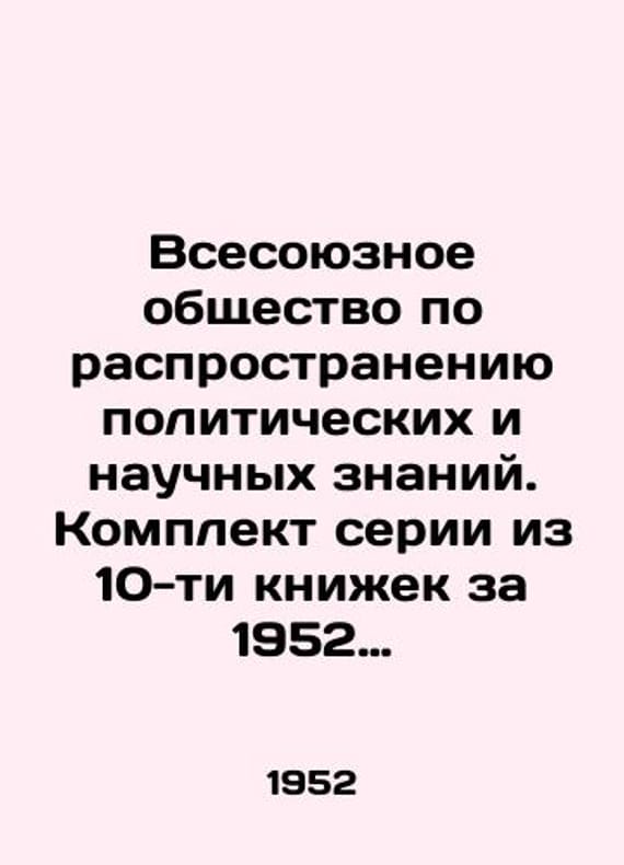 All-Union Society for the Dissemination of Political and Scientific Knowledge. A set of 10 books for 1952. In Russian /Vsesoyuznoe obshchestvo po rasprostraneniyu politicheskikh i nauchnykh znaniy. Komplekt serii iz 10-ti knizhek za 1952 god. M. Znanie 1952. Aleksandrov N.G. Questions of the state and law in the light of the work of I. V. Stalin Marxism and questions of linguistics (24s.).We have thousands of titles and often several copies of each title may be available. Please feel free to contact us for a detailed description of the copies available.SKUalb1461d5d9c05a2fe0.