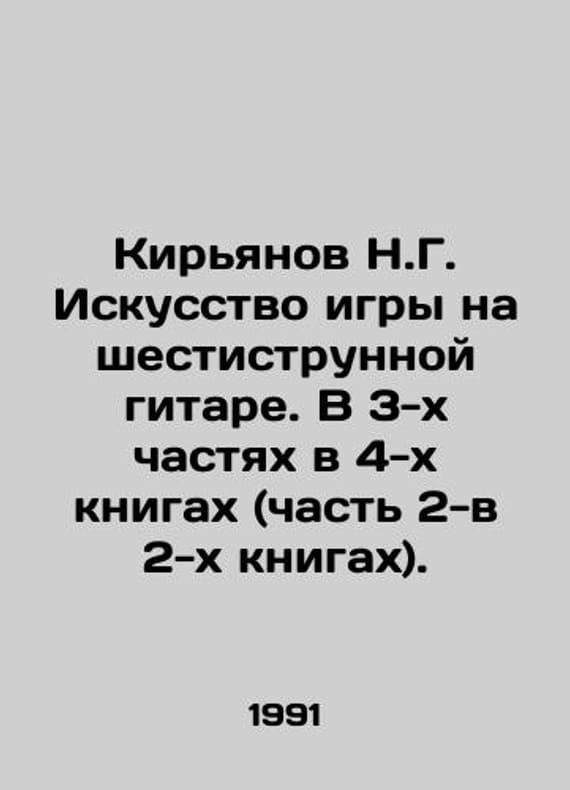 Kiryanov N.G. The art of playing the six-string guitar. In 3 parts in 4 books (Part 2 in 2 books). In Russian /Kiryanov N.G. Iskusstvo igry na shestistrunnoy gitare. V 3-kh chastyakh v 4-kh knigakh (chast 2-v 2-kh knigakh). Moscow Centre for the Promotion of the Arts, Tonika 1991. 136s.We have thousands of titles and often several copies of each title may be available. Please feel free to contact us for a detailed description of the copies available.SKUalb14a26a545fca0eba.