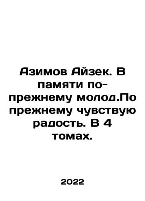 Azimov Isaac. My memory is still young. I still feel happy. In 4 volumes. In Russian /Azimov Ayzek. V pamyati po-prezhnemu molod.Po prezhnemu chuvstvuyu radost. V 4 tomakh. Collection of works in 9 volumes. Book 1,2,3,4. Library of Adventures and Science Fiction. Translation into Russian-A.Gruzberg.M. Extraterrestrial Center 2022. 448 p. We have thousands of titles and often several copies of each title may be available. Please feel free to contact us for a detailed description of the copies available. SKUalb14cbaf37c8b2c313.