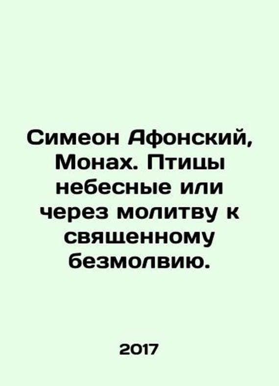 Simeon of Athos, Monk. Birds of heaven, or through prayer to holy silence. In Russian /Simeon Afonskiy, Monakh. Ptitsy nebesnye ili cherez molitvu k svyashchennomu bezmolviyu. M Syntagma 2017.We have thousands of titles and often several copies of each title may be available. Please feel free to contact us for a detailed description of the copies available.SKUalb14ccda21a30e7f8d.