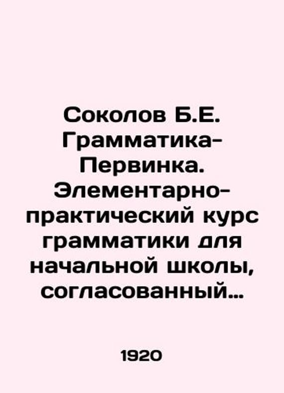 Sokolov B.E. Grammar-Pervinka. Elementary and Practical Grammar Course for Primary School, aligned with the requirements of the new spelling In Russian /Sokolov B.E. Grammatika-Pervinka.Elementarno-prakticheskiy kurs grammatiki dlya nachalnoy shkoly, soglasovannyy s trebovaniyami novogo pravopisaniya Petrograd. State Publishing House 1920. We have thousands of titles and often several copies of each title may be available. Please feel free to contact us for a detailed description of the copies available. SKUalb14ff46fac89f956f.