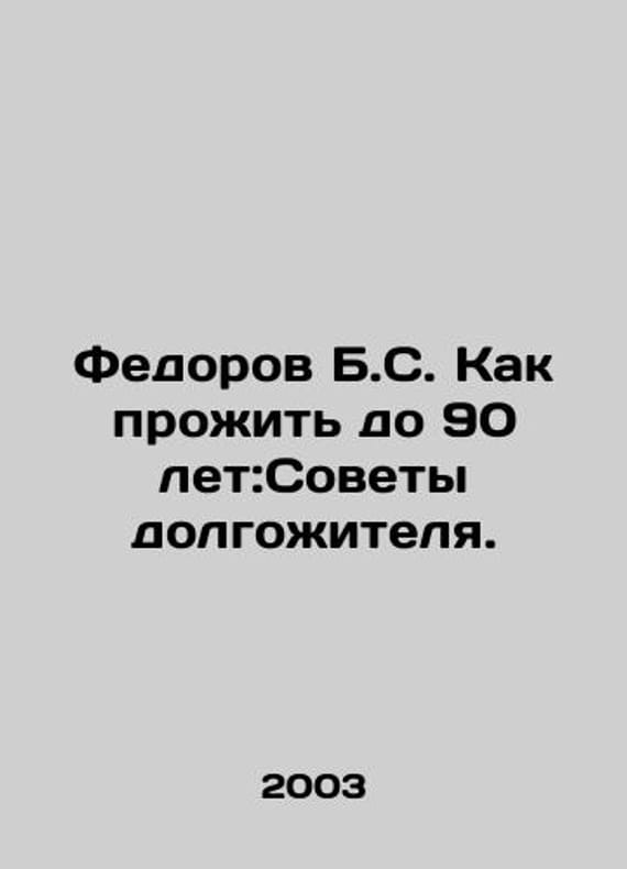 Feodorov B.S. How to live to 90: Tips for longevity. In Russian /Fedorov B.S. Kak prozhit do 90 let:Sovety dolgozhitelya. M. Ripoll Classic 2003, 192 p.We have thousands of titles and often several copies of each title may be available. Please feel free to contact us for a detailed description of the copies available.SKUalb151c7e111ed26483.