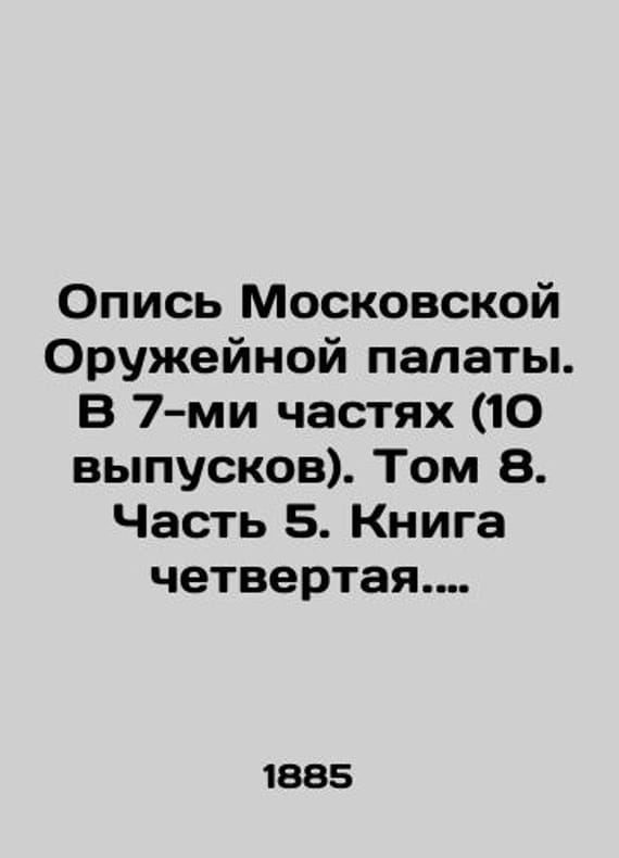Inventory of the Moscow Weapons Chamber. In 7 parts (10 issues). Volume 10. Part seven. Volume ten. Additional Articles. In Russian (ask us if in doubt)/Opis Moskovskoy Oruzheynoy palaty. V 7-mi chastyakh (10 vypuskov). Tom 10. Chast sedmaya. Tom desyatyy. Dopolnitelnaya stati. Issued with His Imperial Highnesss permission. M. Printing Society for the Distribution of Useful Books 1893 55 3 82 2 30 2 c. illustrations and 2 l. Illustrations The seventh part of the Armoury Chamber includes items received by the Chamber after the final revision of the six volumes of the Systematic Description as well as all other items that for various reasons have not found their place in the aforementioned volumes. Detailed inventory of items # 9225-9726. SKUalbc00e746023b57d39.