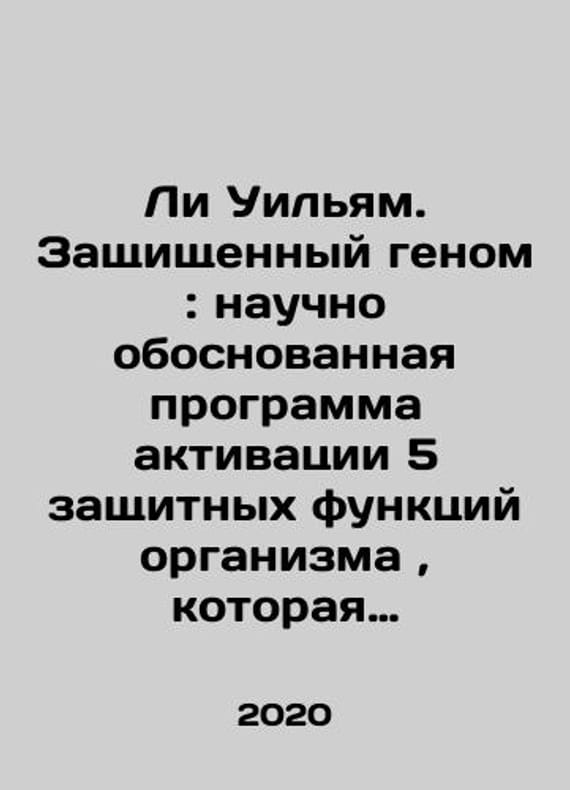 Lee William. Protected Genome. A scientifically based program to activate the 5 protective functions of the body. In Russian /Li Uilyam. Zashchishchennyy genom. Nauchno obosnovannaya programma aktivatsii 5 zashchitnykh funktsiy organizma. Series: Discovery of the Century: The State-of-the-Art Exploration of M.: Bombshell 2020..Contact us for details or to request photos of available books. Delivery of this book could take longer than normal due to additional handling time before shipping, and no rush delivery options are available. Please let us know if you have a specific date by which you need to receive your order. SKUalb5d0e7d486b6b43dc