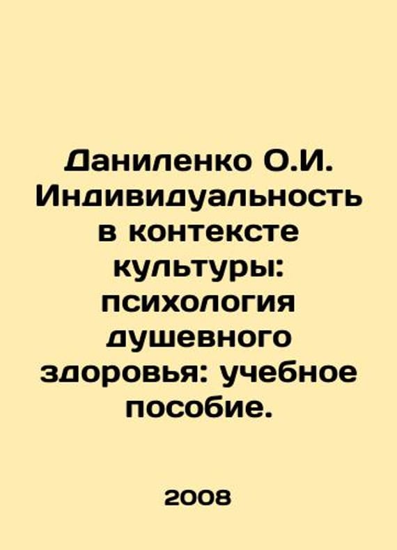 Danilenko O.I. Individuality in the Context of Culture: Psychology of Mental Health: A Textbook. In Russian /Danilenko O.I. Individualnost v kontekste kultury: psikhologiya dushevnogo zdorovya: uchebnoe posobie. S.Pb.SPbGU 2008. 193 p.We have thousands of titles and often several copies of each title may be available. Please feel free to contact us for a detailed description of the copies available.SKUalb1567ef6daad5c5f6.