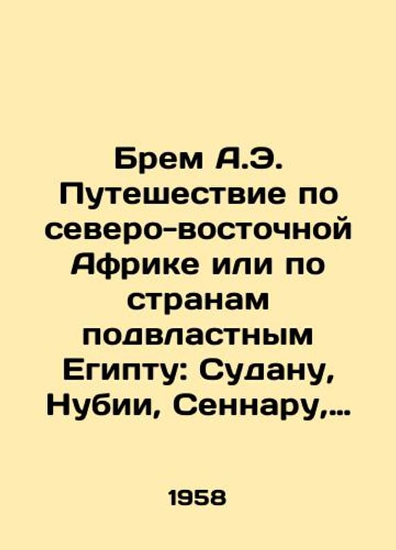 Brem A.E. Journey through Northeast Africa or Egypt: Sudan, Nubia, Sennar, Rosseres, and Kordofan. Dr. Alfred Edmund Brem is a member of the Leopoldino-Karolinska Academy and other scientific societies In Russian /Brem A.E. Puteshestvie po severo-vostochnoy Afrike ili po stranam podvlastnym Egiptu: Sudanu, Nubii, Sennaru, Rosseresu i Kordofanu.D-ra Alfreda Edmunda Brema Chlena Leopoldino-Karolinskoy Akademii i drugikh uchenykh obshchestv. Nauchnaya redaktsiya, vstupitelnaya statya i k M.: Geografgiz 1958.We have thousands of titles and often several copies of each title may be available. Please feel free to contact us for a detailed description of the copies available.SKUalb158863c29250e3fa.