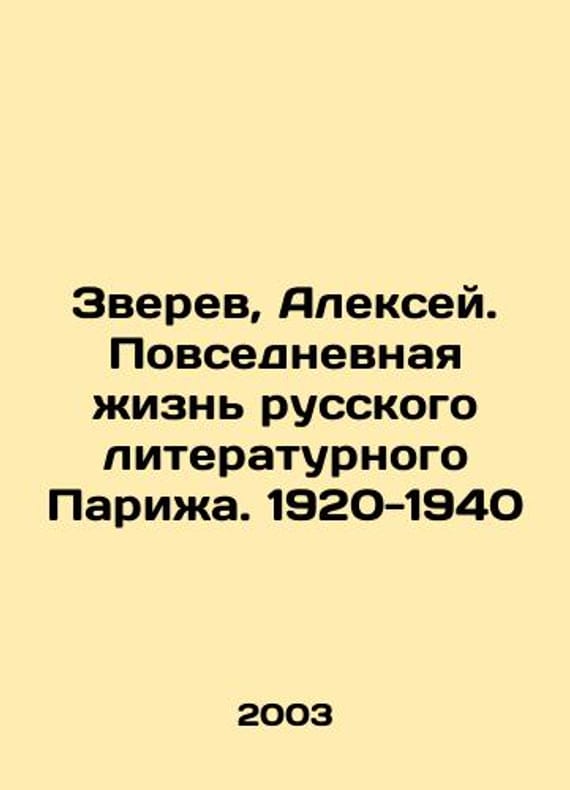 Zverev, Alexey. Everyday life in Russian literary Paris. 1920-1940 In Russian /Zverev, Aleksey. Povsednevnaya zhizn russkogo literaturnogo Parizha. 1920-1940 M Young Guard 2003. 369 p.We have thousands of titles and often several copies of each title may be available. Please feel free to contact us for a detailed description of the copies available.SKUalb15a217eacd9043cd.
