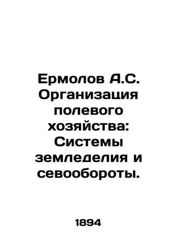 A.S. Ermolov Field Organization: Agricultural Systems and Crop Circulation. In Russian (ask us if in doubt)/Ermolov A.S. Organizatsiya polevogo khozyaystva: Sistemy zemledeliya i sevooboroty. Short description: In Russian (ask us if in doubt).3rd ed. corrected and supplemented by A.F. Devrien 1894 2 XL 2 584s. We have thousands of titles and often several copies of each title may be available. Please feel free to contact us for a detailed description of the copies available. SKUalb15c728ea4714a69f