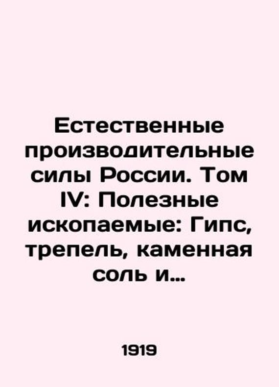 Russias Natural Productive Forces. Volume IV: Mineral Resources: Gypsum, Trembling, Stone Salt and Salt Lakes In Russian /Estestvennye proizvoditelnye sily Rossii. Tom IV: Poleznye iskopaemye: Gips, trepel, kamennaya sol i solyanye ozera Compiled by the Geological Committee. Publication of the Commission for the Study of Natural Productive Forces of Russia, which is part of the Russian Academy of Sciences, Pg: State Printing House 1919-1924. The publication of Natural Productive Forces of Russia is motivated by the need to take as complete an inventory of our natural resources as possible, to find out the extent of their use and to identify gaps in our knowledge of the countrys productive forces. We have thousands of titles and often several copies of each title may be available. Please feel free to contact us for a detailed description of the copies available. SKUalb15ca676ccdc86a92.