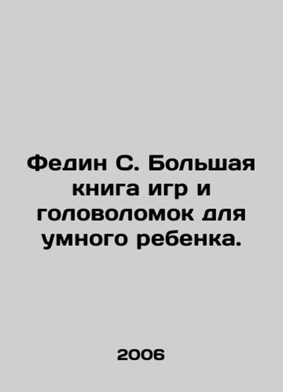 Fedin S. A great book of games and puzzles for a smart child. In Russian /Fedin S. Bolshaya kniga igr i golovolomok dlya umnogo rebenka. Il Guriev A. M.: Readers Digest, 2006. We have thousands of titles and often several copies of each title may be available. Please feel free to contact us for a detailed description of the copies available. SKUalb163e21f13f9e0b27.