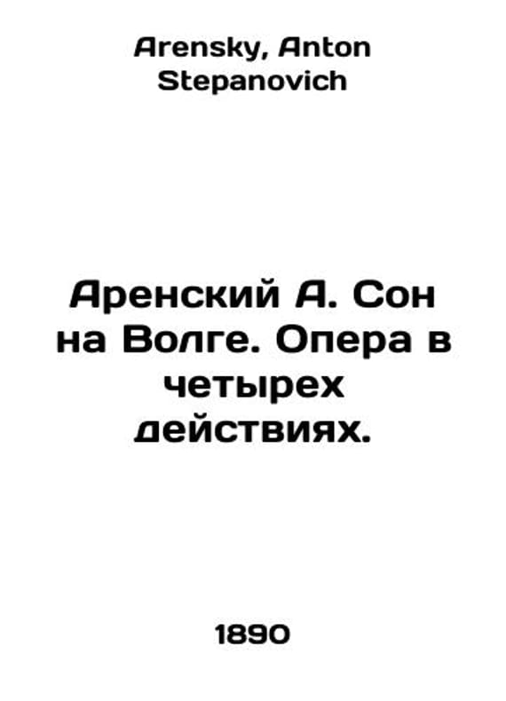 A. Arenskys Dream on the Volga. Opera in four acts. In Russian /Arenskiy A. Son na Volge. Opera v chetyrekh deystviyakh. M. Music Trade by P. Jurgenson. Circulation not specified. 1890. 48 p. We have thousands of titles and often several copies of each title may be available. Please feel free to contact us for a detailed description of the copies available. SKUalb163edb9b9ec2d93f.
