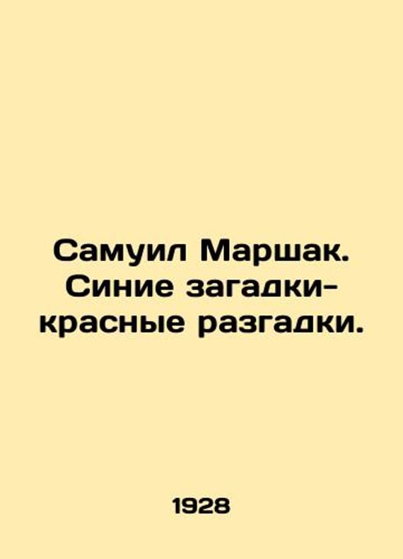 Samuel Marshak. Blue puzzles-red puzzles. In Russian /Samuil Marshak. Sinie zagadki-krasnye razgadki. Drawings by B. Tatarinov, E. Dorfman. Moscow: State Publishing House, 1928. 9 p. We have thousands of titles and often several copies of each title may be available. Please feel free to contact us for a detailed description of the copies available. SKUalb165cda429a59be32.