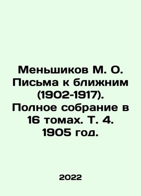 M. O. Menshikov Letters to Neighbors (1902-1917). Complete collection in 16 volumes, Vol. 4, 1905. In Russian /Menshikov M. O. Pisma k blizhnim (1902 1917). Polnoe sobranie v 16 tomakh. T. 4. 1905 god. The Stranger Empire series. Year after year. 1902 to 1917. St. Petersburg, Time Machine, 2022. 825 p.We have thousands of titles and often several copies of each title may be available. Please feel free to contact us for a detailed description of the copies available.SKUalb1675ca6c34115d0c.