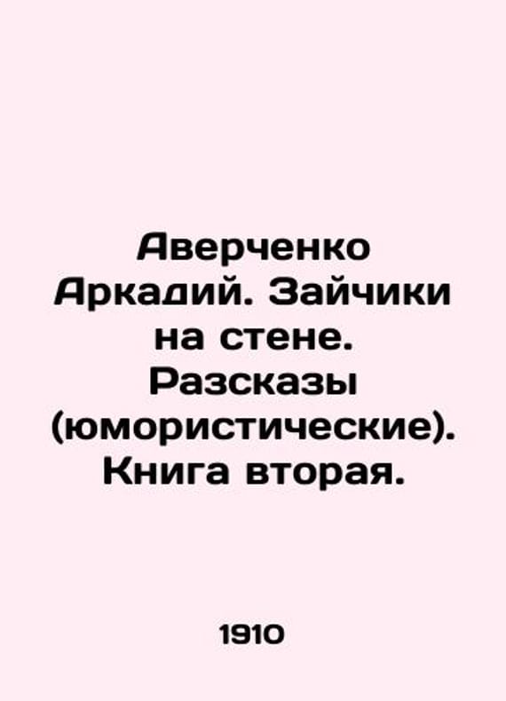 Averchenko Arkady. Bunnies on the wall. Stories (humorous). Book two. In Russian /Averchenko Arkadiy. Zaychiki na stene. Razskazy (yumoristicheskie). Kniga vtoraya. St. Petersburg. Rosewood. 1910. We have thousands of titles and often several copies of each title may be available. Please feel free to contact us for a detailed description of the copies available. SKUalb16a2a58340454d1e.