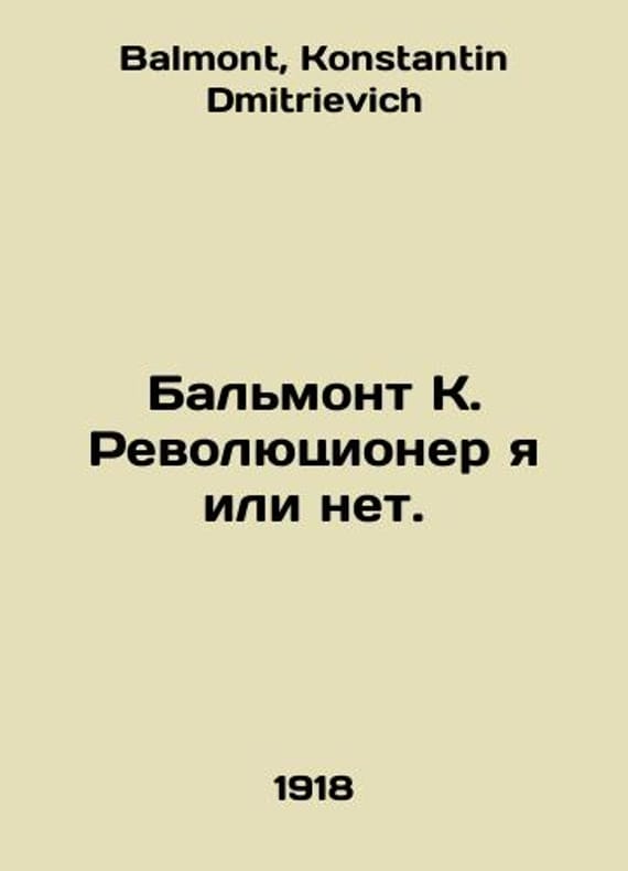 Balmont K. I am a revolutionary or not. In Russian /Balmont K. Revolyutsioner ya ili net. M. Verf. 1918. 48 p. We have thousands of titles and often several copies of each title may be available. Please feel free to contact us for a detailed description of the copies available. SKUalb16d1dac719286b74.